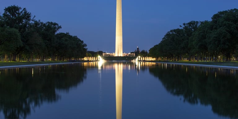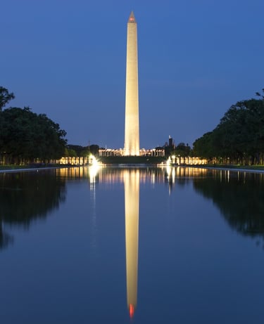 As seen from the edge of the reflecting pool from the Lincoln Monument.