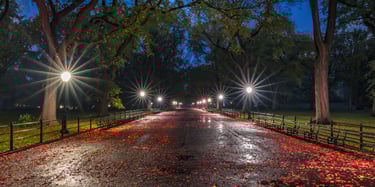 I was walking though Central Park in the heard of New York City and happened across this under pass fully illuminated early in the morning. Off in the distance you can see the Angel of the Waters welcoming all who visit.